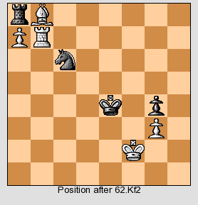 The game continued 37...Re8 38.a6 Ra8 39.a7 Nf6 40.Bb8 A sad position indeed for the Black Rook. But how is White to win? 40...Nd5 41.Rc1 Nb4 42.Rc4 Nd5 43.Rxc6 Kh7 44.Kf2 f6 45.Rc5 Nb4 46.Rxh5+ Kg6 47.Rb5 Nc6 48.Rb7 Kh5 49.Ke3 g6 50.Rb5+ Kg4 51.Rb7 g5 52.hxg5 fxg5 53.Kf2 Kh3 54.Kf3 Nd4+ 55.Ke3 Nc6 56.Kf2 Kg4 57.Kg2 Kf5 58.Kh3 g4+ 59.Kg2 Ke4 60.Kf1 Kf5 61.Ke2 Ke4 62.Kf2